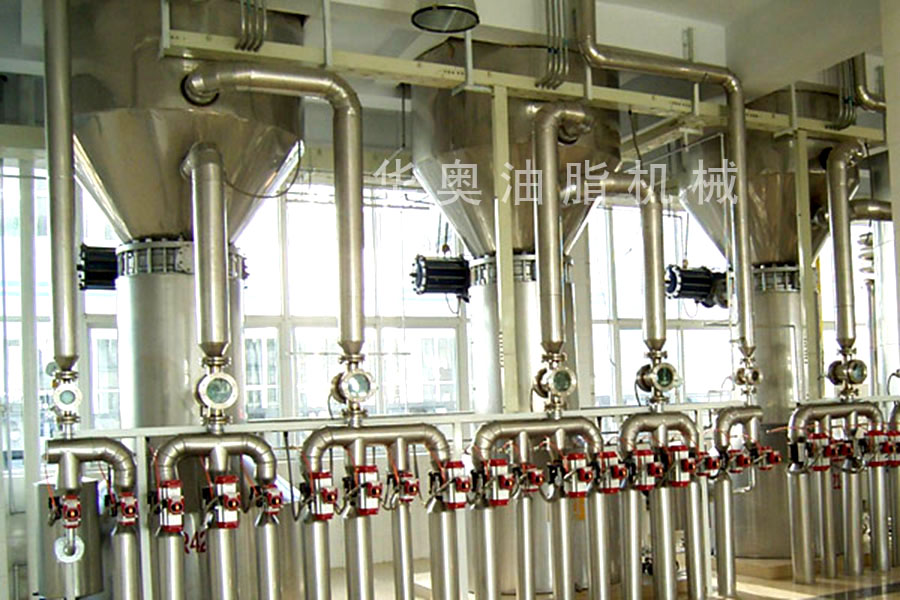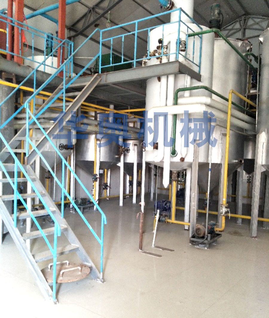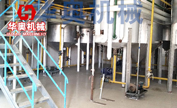 毛油-過濾(葉片過濾機(jī))—脫磷—堿煉—水洗—脫水—脫色—脫臭—冷卻—過濾—成品油,濟(jì)南華奧公司生產(chǎn)的食